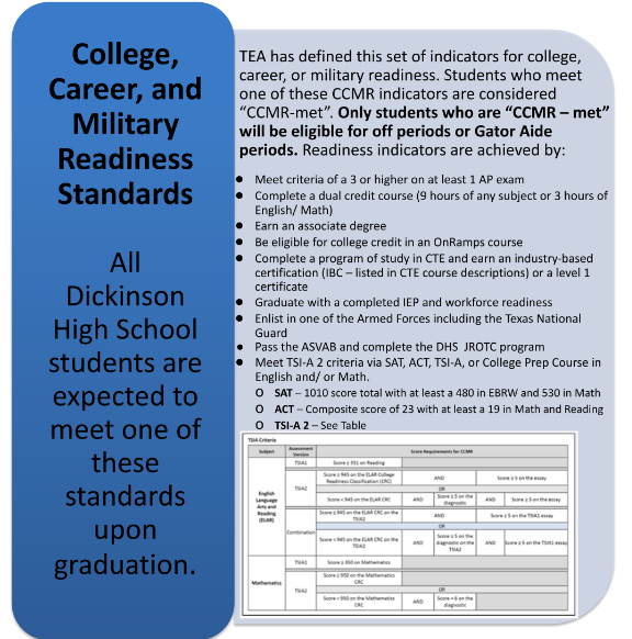 Dickinson ISD strives to encourage students to pursue their areas of special talents and interests to enrich their academic experiences and achievements. We believe this will foster continued and increased involvement in extra-curricular programs and ensure all our students have access to a well-rounded education. Dickinson ISD students may pursue a GPA Waiver for any year long, one credit elective course that does not count as a content course in the areas of English, Science, Social Studies, Mathematics and LOTE. This option allows students who receive an “A” in a qualifying elective course to request that it be converted to credit with no grade points.