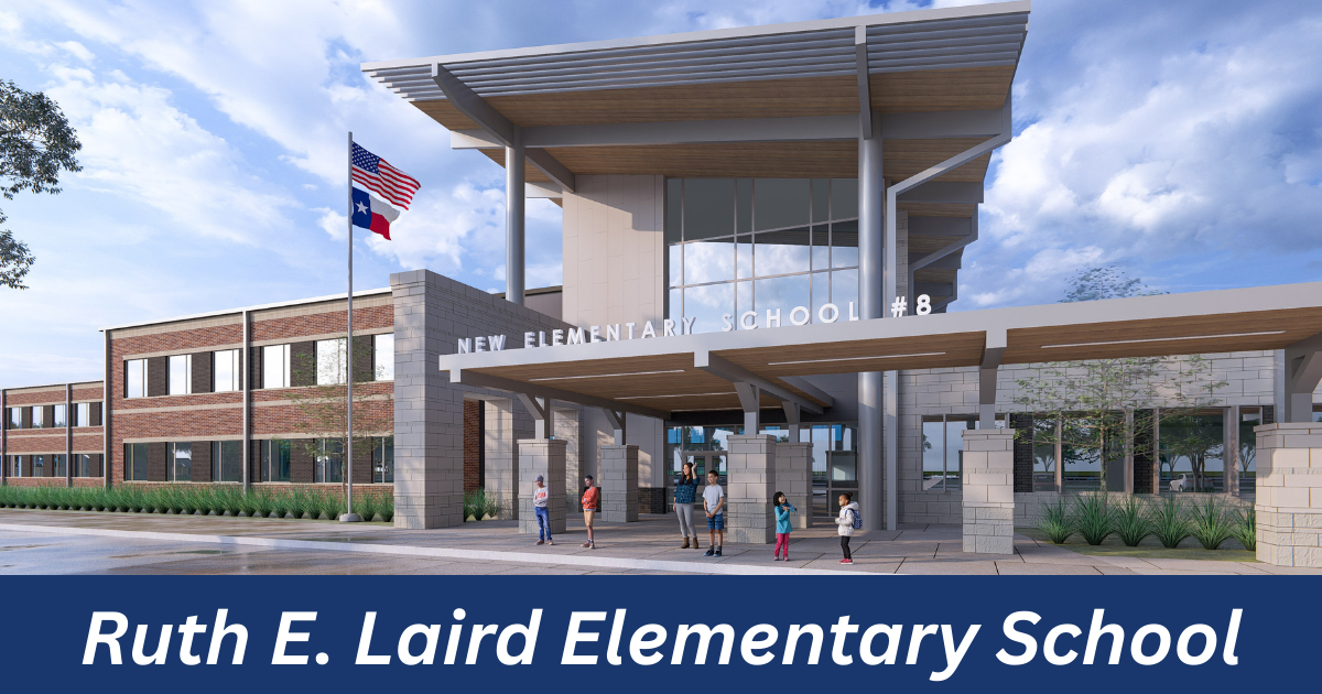 Welcome to Ruth E. Laird Elementary school, located in Texas City in the Lago Mar neighborhood. This pre-k thru 5th grade campus will serve 1,000 students in Dickinson ISD. This new school is expected to open in August for the 2026-2027 school year.
