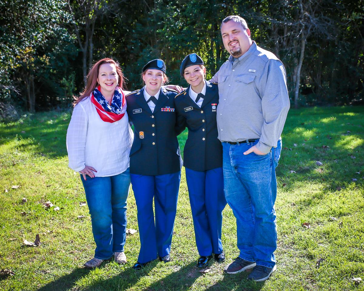 Hello! My name is Amber Yokum and this is my family. I am a 3rd generation graduate of Dickinson High School, class of '92. My husband, John, is a teacher and head swim/water polo coach at Alvin High School. Both my girls serve in the United States Army in different capacities. My oldest, Krysten, is 26 years old and this is her 8th year in the Army. Caitlyn is 19 and is a Combat Medic with the Texas Army National Guard. COVID 19 active duty has altered her planned studies, but she is pursuing a degree in nursing while serving with the Army National Guard. She is studying remotely with Alvin Community College around her duty hours and will transfer to Tarleton State University in Stephenville next Fall.