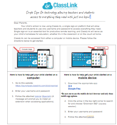 Class Link is where all students should be logging into when doing school assignments below are instructions on how to download the app. Logging in: Username: DISD****** (student ID) Password: Disd********(studentbirthday)